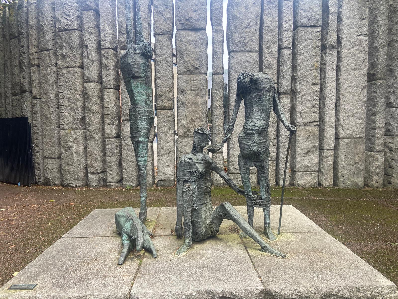 O memorial da Grande Fome da Irlanda está localizado no parque St Stephen’s Green, em Dublin. É umas das obras mais famosas do artista irlandês Edward Delaney