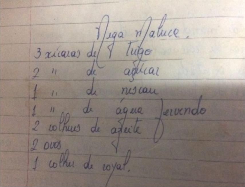 Lídia é o nome da minha vó, autora do Caderno que encontrei na caixa de papelão. Imigrante portuguesa, há 60 anos veio para o Brasil com meu vô e dois filhos embaixo do braço. Também trouxe muitas receitas na cabeça. As comidas que aprendeu com a mãe e também aquelas que aprendeu no tempo que morou em Huambo, na Angola. Ela me contou que chegando no Brasil muita coisa precisou ser adaptada, ou por falta dos ingredientes ou porque uma vizinha lhe contou um segredo novo. A vida. A vida acontecendo e a comida, assim como a gente, se modificando. Memória que leva tempo para cristalizar e não pode ser registrada pelo algoritmo.
